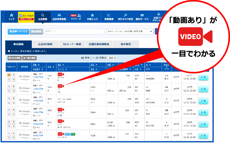 AI-NETでは、エンジン音や稼働状況などを動画・音声で確認いただける仕組みを強化してきましたが、今回のプロジェクトでは、動画公開車両をより“直感的に”見つけられるように改良しています。